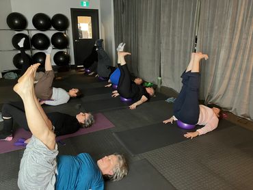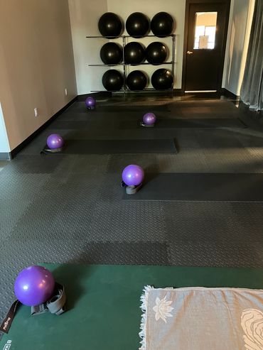 Our studio features are designed to create a serene and tranquil environment. With a maximum capacity of 9 spots, we ensure an intimate and personalized experience for each member. Soft lighting and candles contribute to a soothing atmosphere, while our collection of blankets, bolsters, mats, and yoga blocks provide comfort and support during your practice. We offer Resist-A-Balls classes, Mat Pilates, YIN & Gentle Yoga for functional strength, core and balance training.