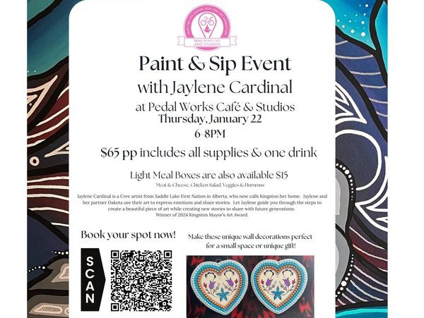 Create these beautiful wall decorations to take home or gift to someone special. All supplies and one drink are included in the price. Step by step instruction by award winning artist Jaylene Cardinal.